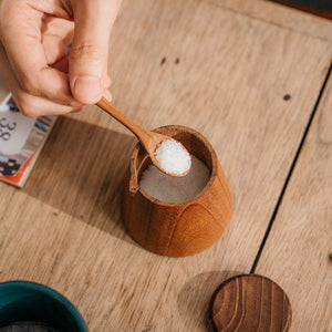 Support à sel, à sucre ou à assaisonnement en bois de teck