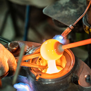 Soufflé à la main en utilisant uniquement du verre recyclé. Environ 8 cm de diamètre. La taille et la forme varient (environ 1 à 2 cm) d'une pièce à l'autre....