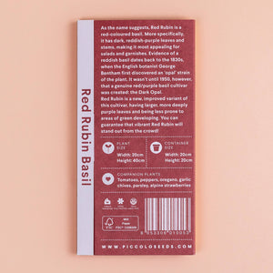 Comme son nom l'indique, le basilic Red Rubin est un basilic rouge. Plus précisément, ses feuilles et ses tiges d'un violet rougeâtre foncé le rendent particulièrement attrayant pour les salades...